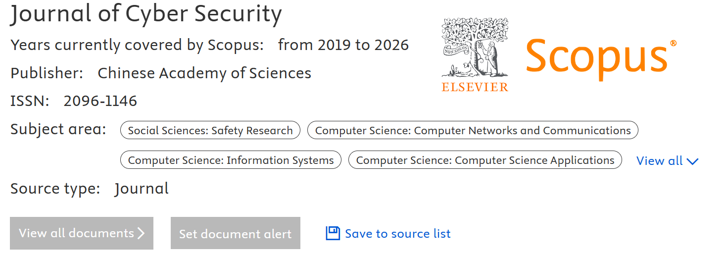 The Journal of Cyber Security, identifiable by its ISSN: 2096-1146, stands as a prominent publication within the realm of information. As a Scopus indexed journal, it commands respect and recognition in the academic community, attracting contributions from leading researchers and professionals in the field. This journal aims to facilitate the dissemination of significant research findings and advancements in cybersecurity.